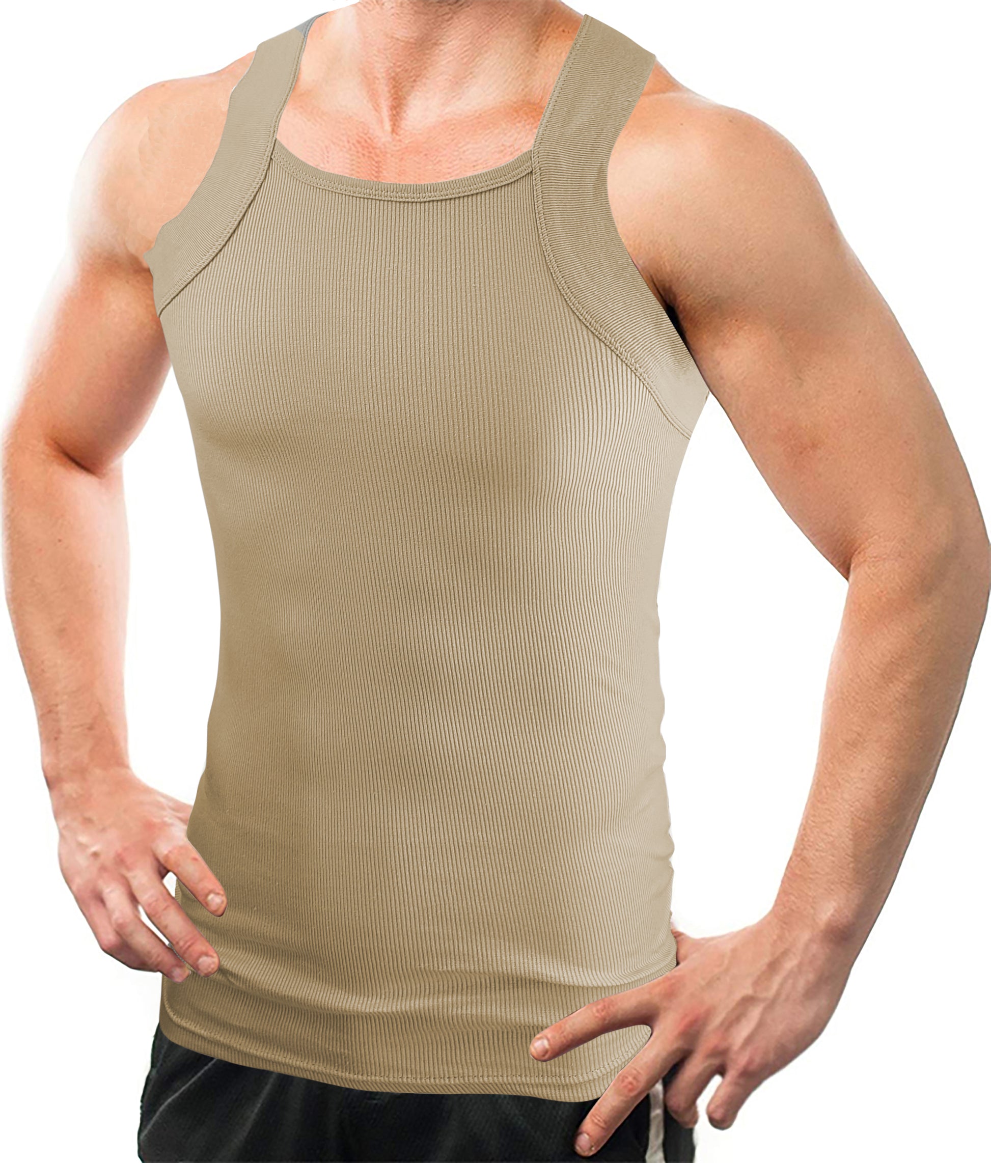 Square Cut G-unit Tank Top| Muscle Rib Basic Color A-Shirts | Men's